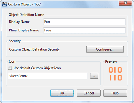 If you create a new definition, you’ll see that there are various fields to set. There the display name and plural display name determines how the objects will be shown to the user. The security defines the default ACL for new objects. The icon is the image that will get displayed next to your objects. This is an .ico file, so you can define multiple sizes. We recommend 16×16 , 32×32, 64×64, or 128×128.