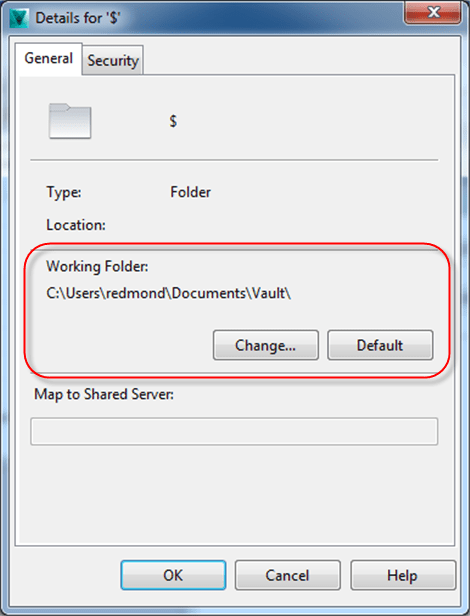 The Vault administrator can enforce a root working folder. This setting has the effect of overwriting any folder mappings set in the Folder Details window. An enforced working folder only gets applied to the root and all sub-folders are based off the root setting.